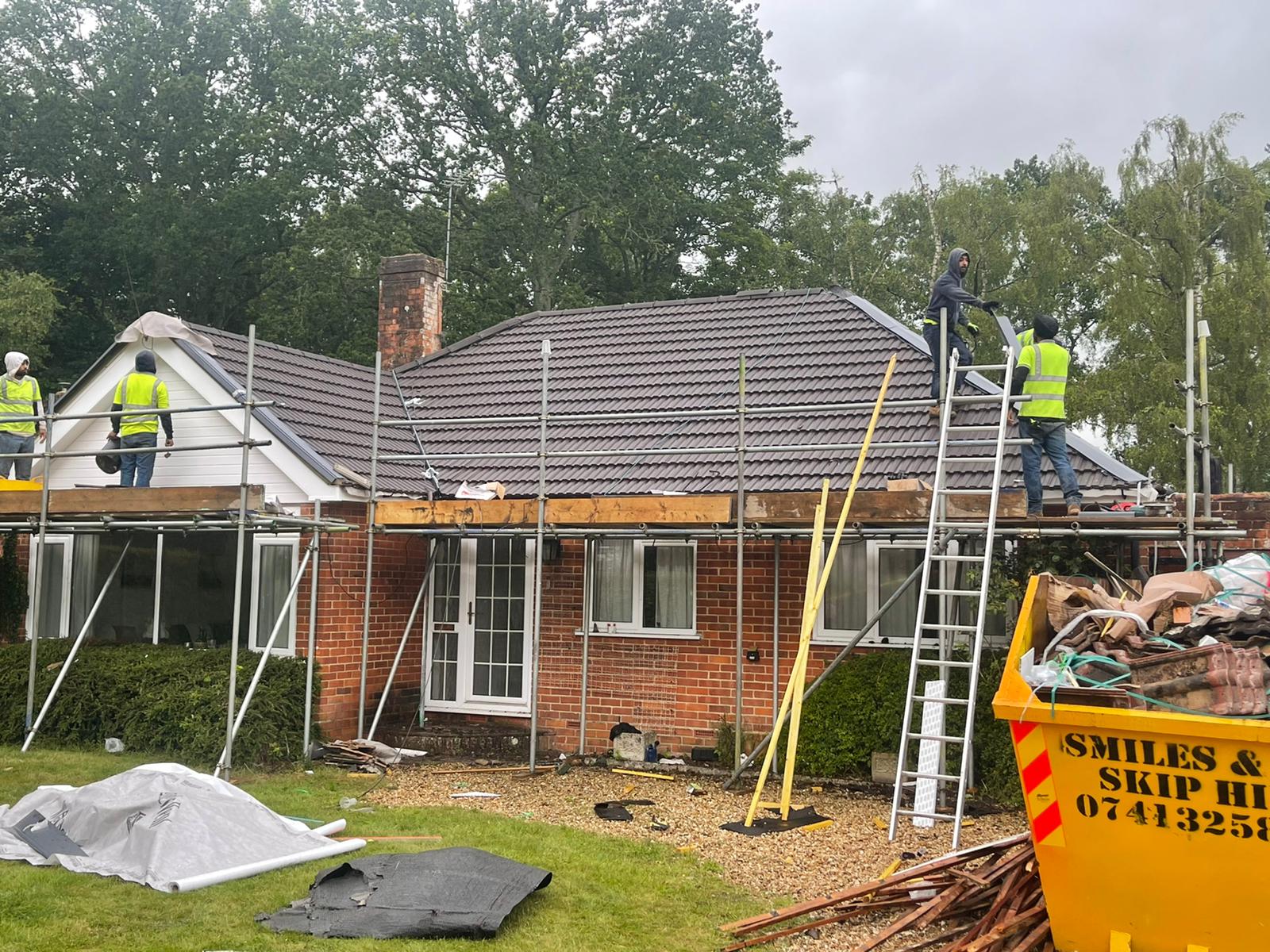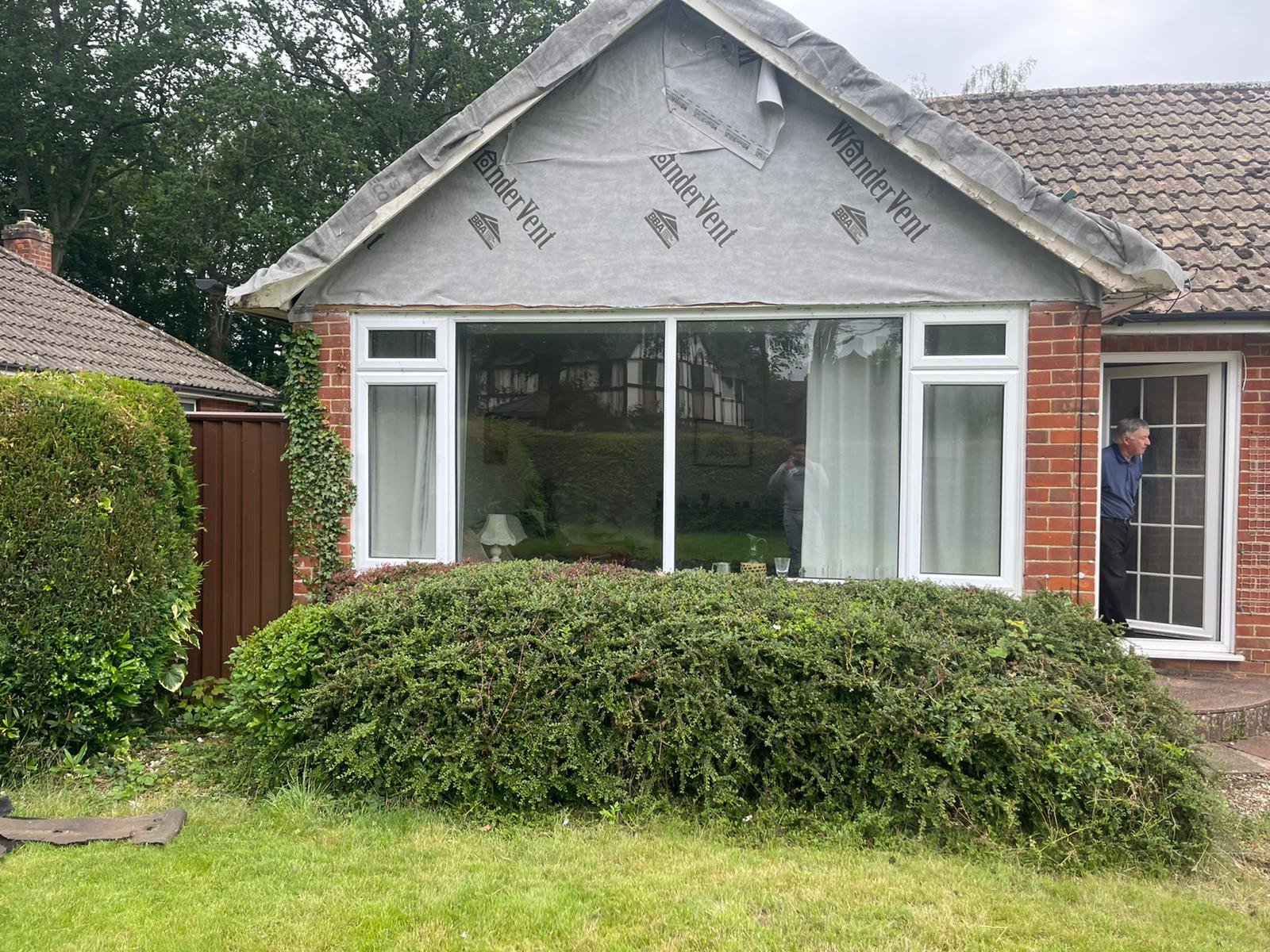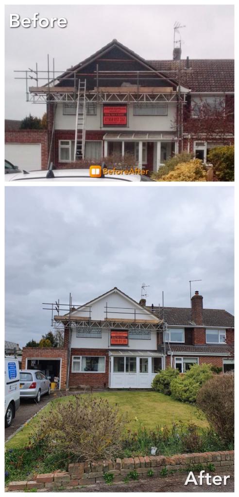Replacement & Strip Off existing roof and Replace Felt batons, new tiles, new ridge, Dry root system, complete UPVC replacement of facias, soffits, Gutters and some of the timbers that are rotten need replacing